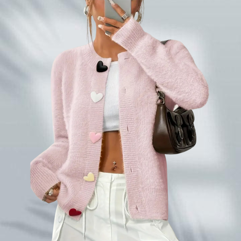 Myk cardigan med hjerteknapper | Sammen mot brystkreft